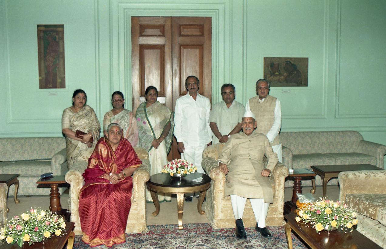 The President of India, Dr. Shankar Dayal Sharma meeting with Shri J.N. Kashyap with family at Rashtrapati Bhavan in New Delhi on March 26, 1997.