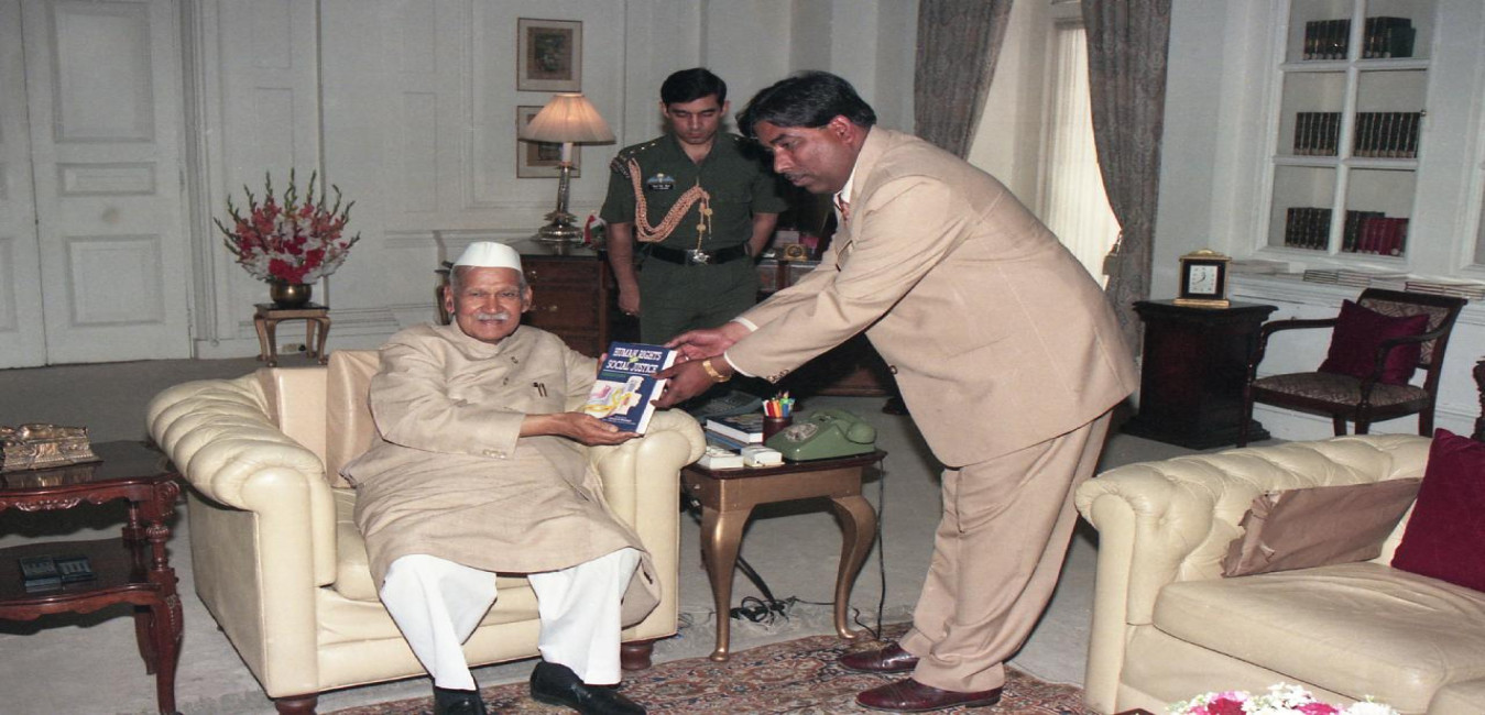 The President of India, Dr. Shankar Dayal Sharma receiving a copy of the books ''Shri Mahender Kumar Nyayacharya Smriti Granth'' and ''Panchkalyan Gajrath Mahotsava Evam Vishwa Shanti Mahayagya Smriti Granth'' brought out by Digambar Jain Samaj at Rashtrapati Bhavan in New Delhi on March 18, 1997.