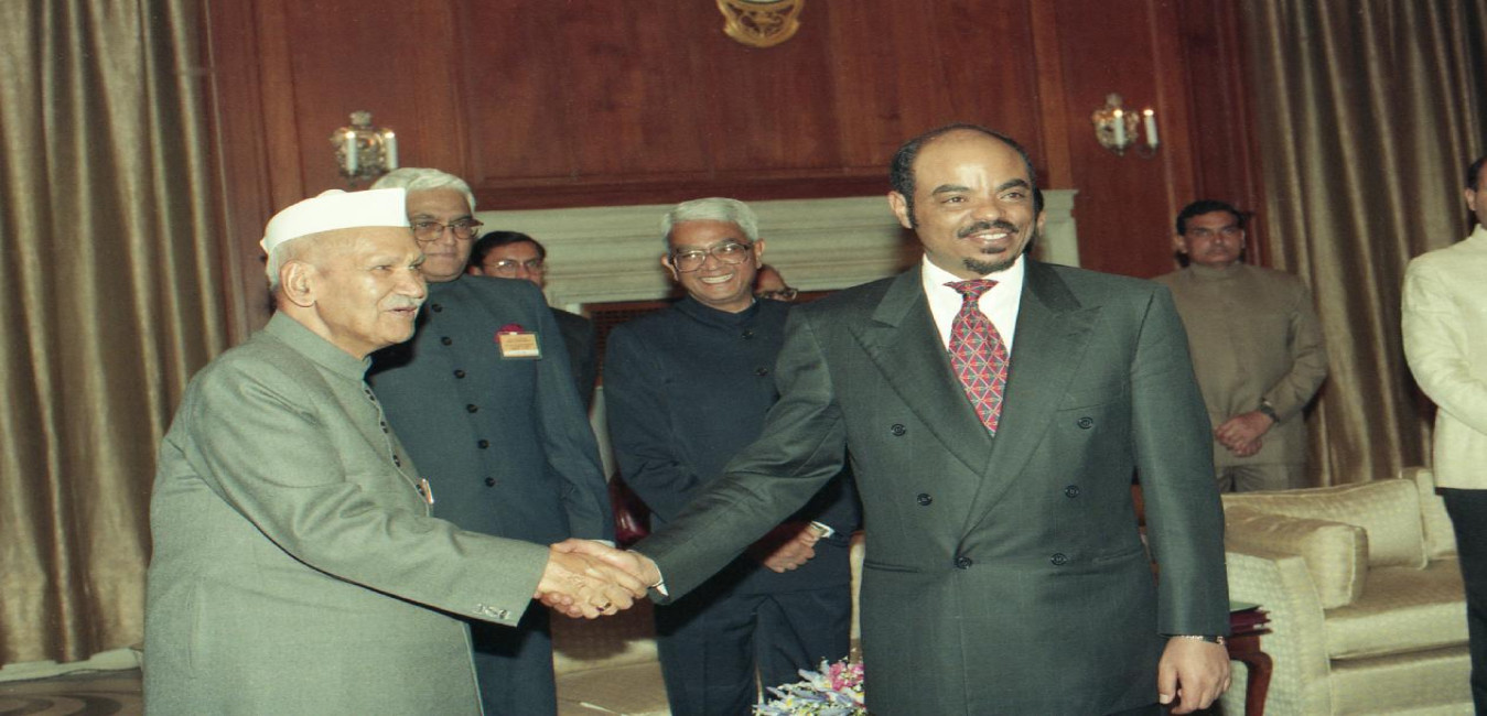 The Prime Minister of the Federal Democratic of Ethiopia, Mr. Meles Zenawi calling on the President of India, Dr. Shankar Dayal Sharma, at Rashtrapati Bhavan in New Delhi on March 06, 1997.