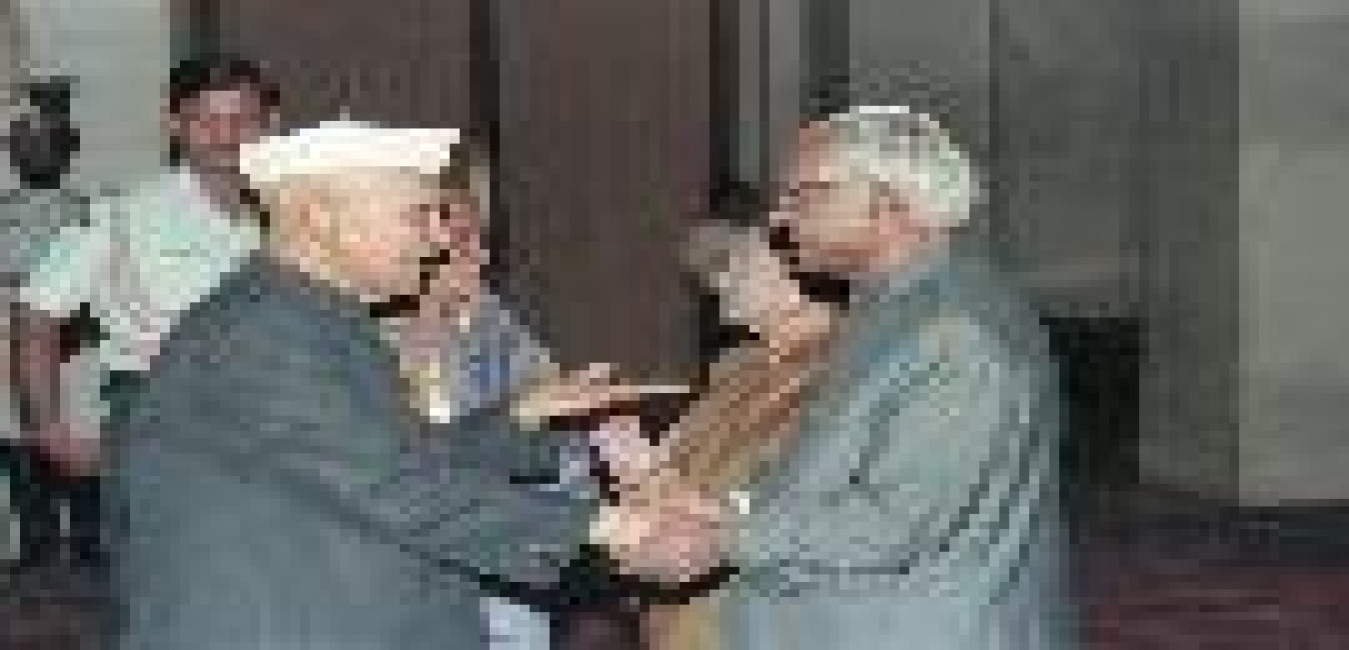 The President of India, Dr. Shankar Dayal Sharma meeting with Shri Babu Lal Azad & Shri H.R. Guru from Bhopal at Rashtrapati Bhavan in New Delhi on July 17, 1997