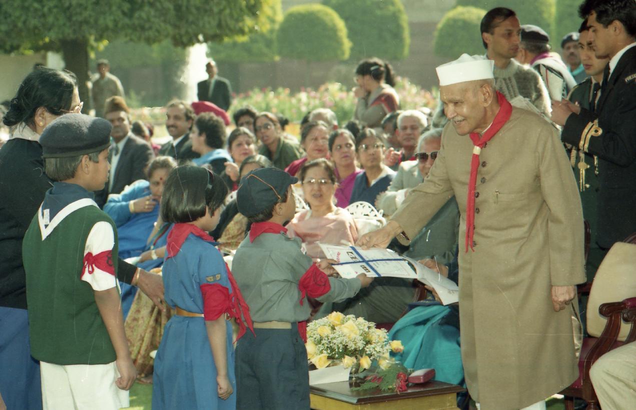 The President of India, Dr. Shankar Dayal Sharma attending the 35th Annual Cub/Bulbul Rally organised by the Delhi State Bharat Scouts & Guides at Rashtrapati Bhavan in New Delhi on February 08, 1997.