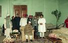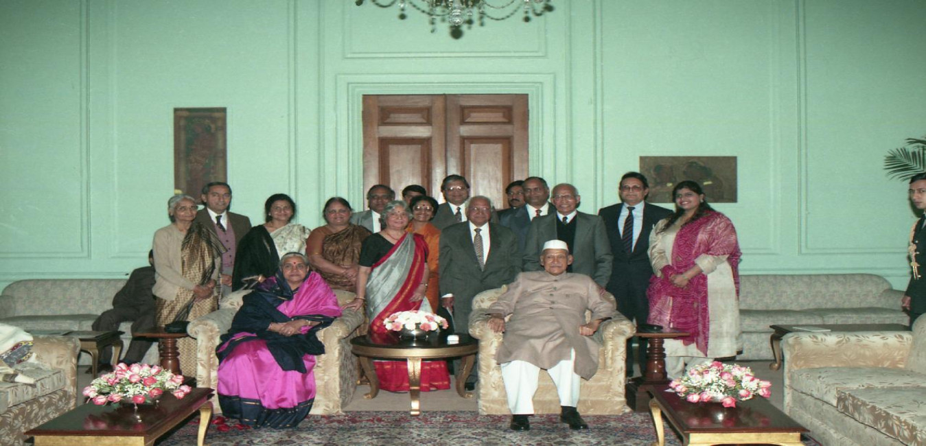 The President of India, Dr. Shankar Dayal Sharma meeting with Smt. Bachendri Pal and other members of the Indian Women's First Trans Himalayan Journey 1997 expedition at Rashtrapati Bhavan in New Delhi on January 29, 1997.