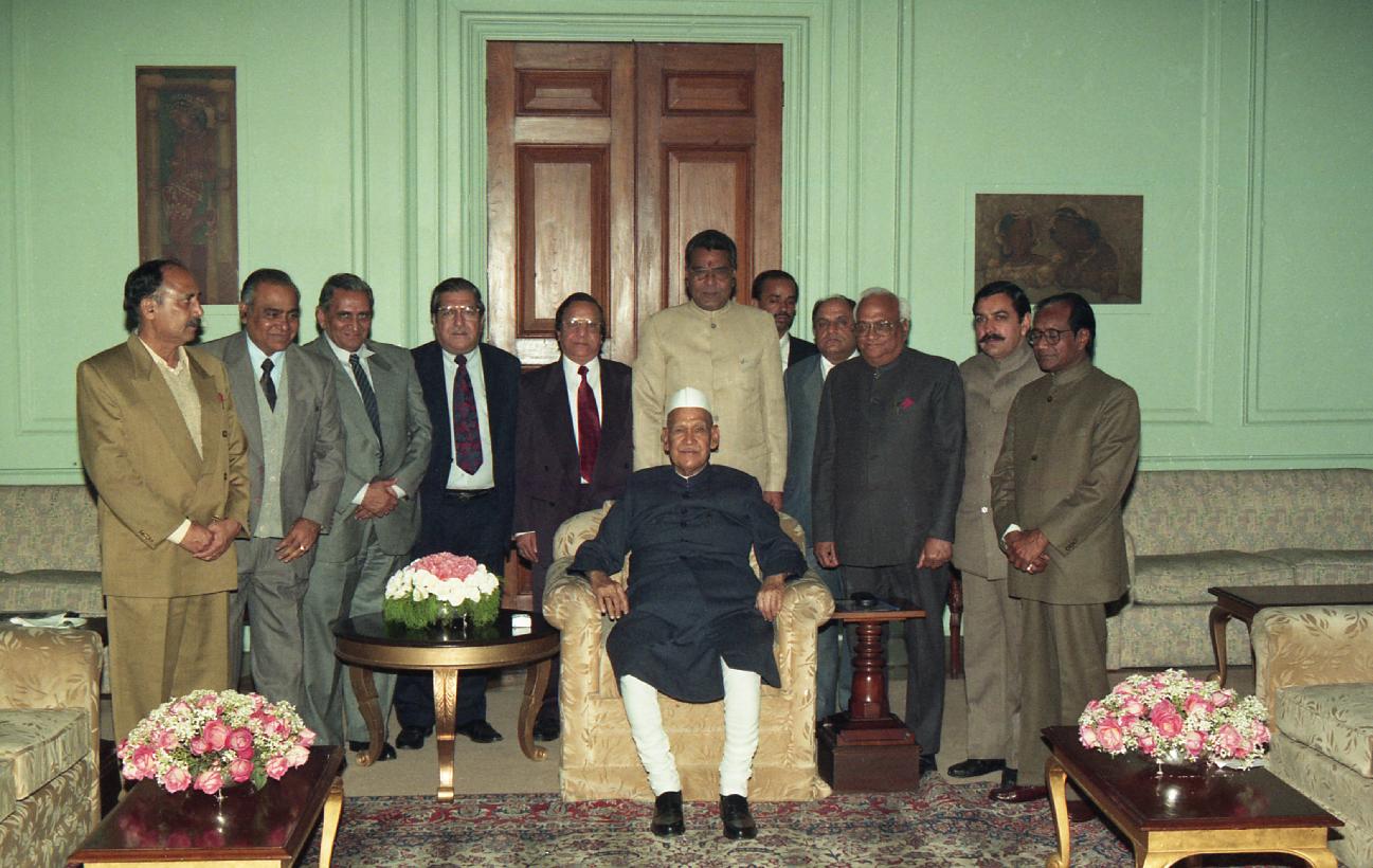 The President of India, Dr. Shankar Dayal Sharma meeting with Shri Prem Naryana Vijayavargiya with Shri P.B. Vijay, Dir. Gen., CPWD at Rashtrapati Bhavan in New Delhi on February 01, 1997.