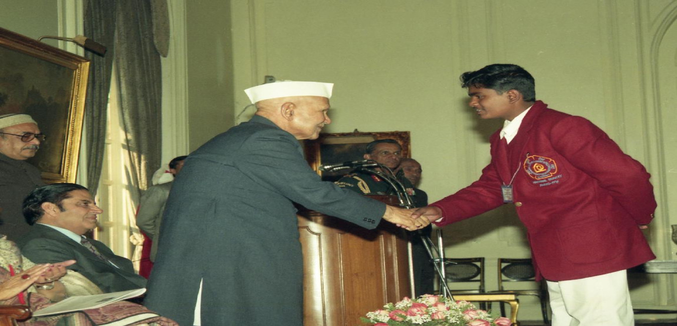 The President of India, Dr. Shankar Dayal Sharma meeting with National Bravery Awards winning Children at Rashtrapati Bhavan in New Delhi on January 22, 1997.