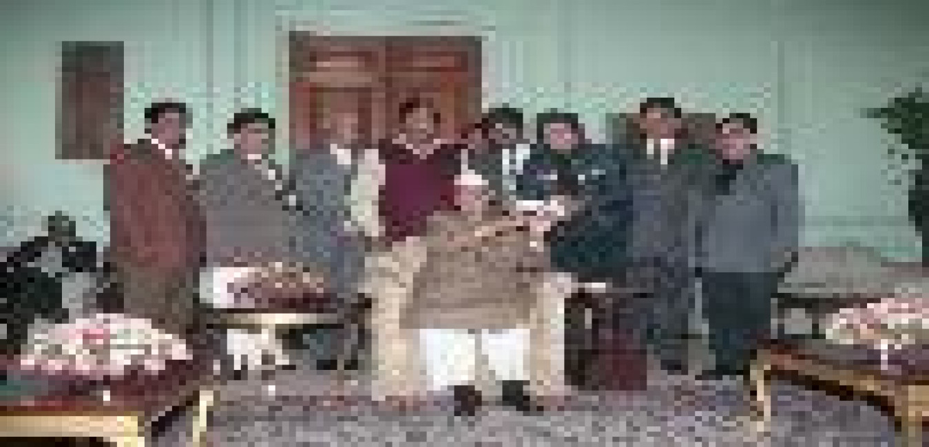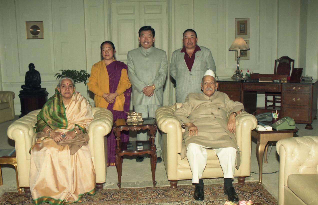 The President of India, Dr. Shankar Dayal Sharma meeting with the Chief Minister of Sikkim, Pawan Kumar Chamling with others at Rashtrapati Bhavan in New Delhi on January 17, 1997.