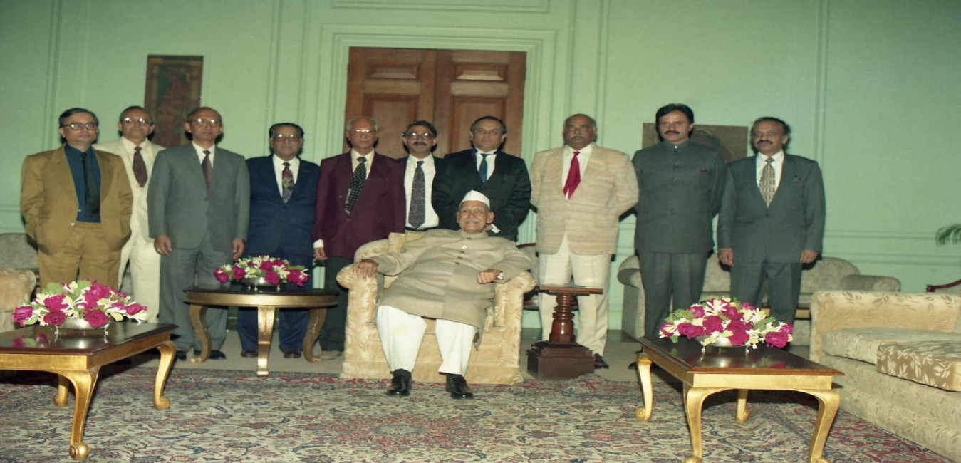 A Delegation of Advocate Generals of India calling on the President of India, Dr. Shankar Dayal Sharma at Rashtrapati Bhavan in New Delhi on November 18, 1997.