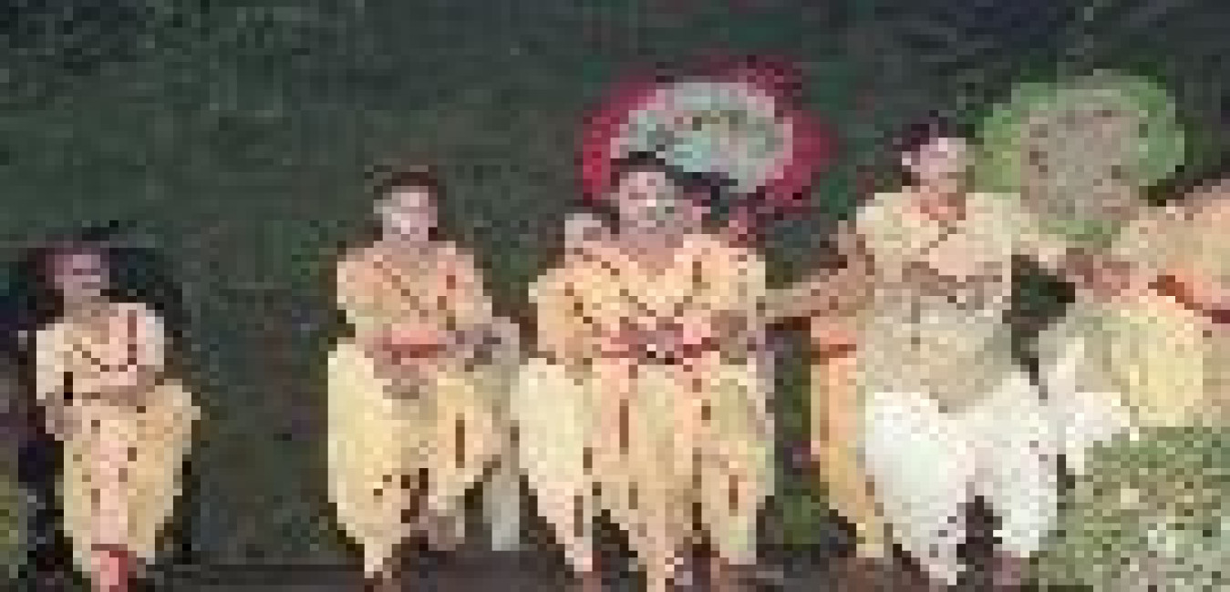 The President of India, Dr. Shankar Dayal Sharma witnessing a dance ensemble by the Eastern Zonal Cultural Centre, Choreographed by Dr. Manushri Chaki Sarkar and Smt. Sharmila Biswas, at Teen Murti House in New Delhi on November 14, 1996.