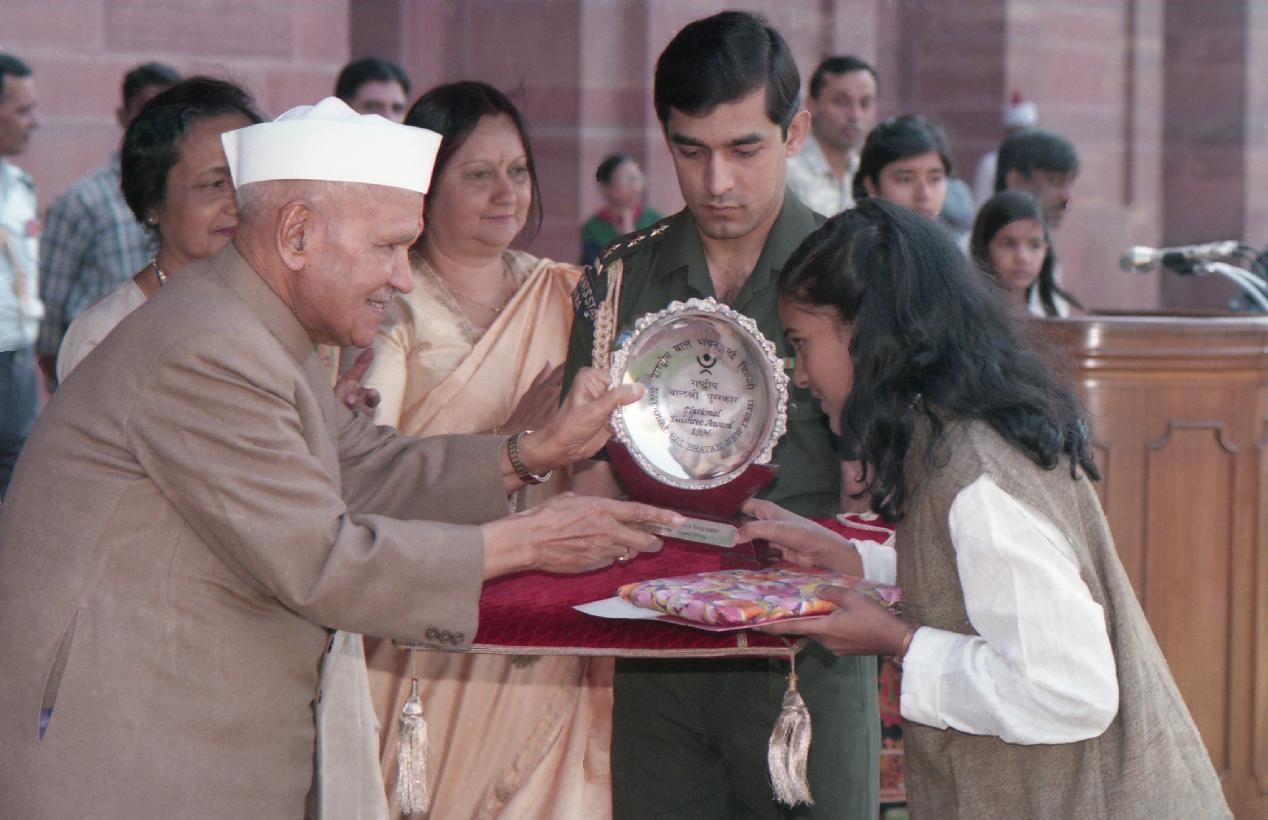The President of India, Dr. Shankar Dayal Sharma presenting Bal Shree Awards of the Bal Bhavan Society India at Rashtrapati Bhavan in New Delhi on November 15, 1996.