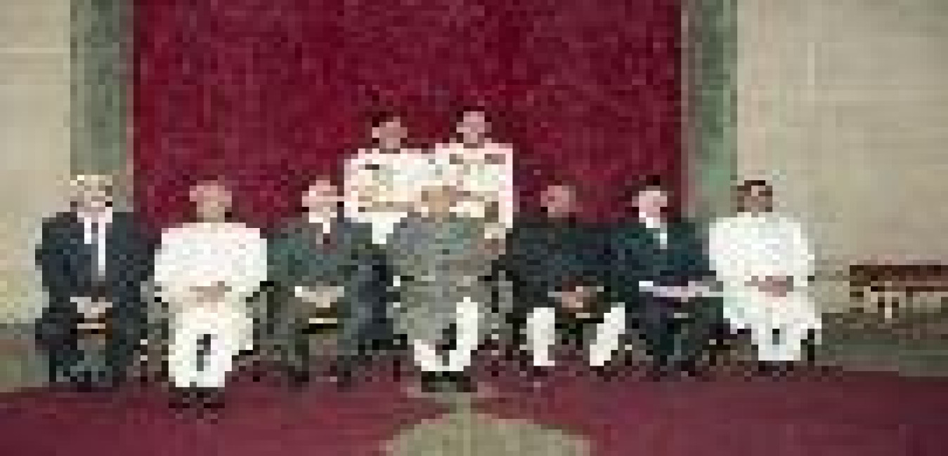 The President of India, Dr. Shankar Dayal Sharma meeting with Justice R.C. Lal with others at Rashtrapati Bhavan in New Delhi on November 11, 1996.