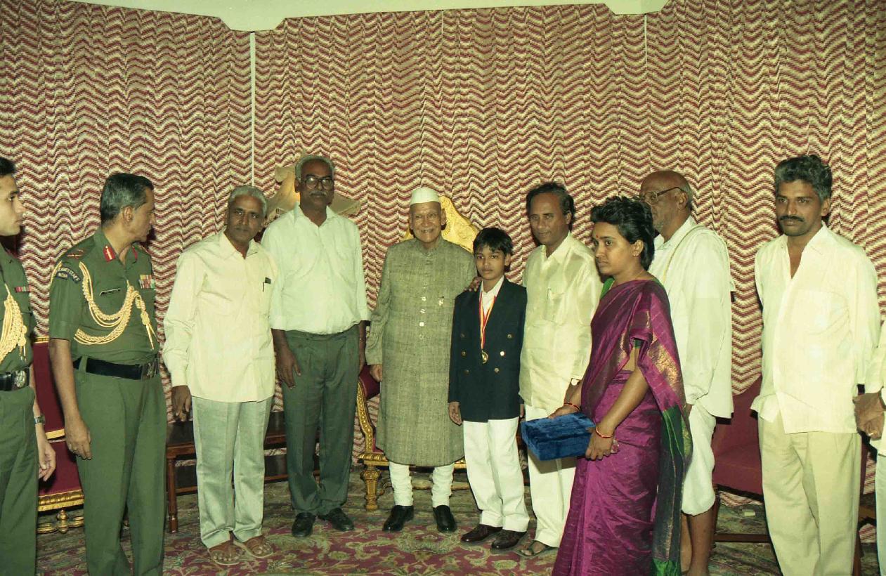 The President of India, Dr. Shankar Dayal Sharma meeting with Gold Medalist, World Chess Competition and others, at Rashtrapati Nilayam, in Secunderabad, Andhra Pradesh on November 06, 1996.