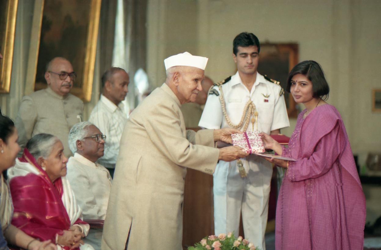 The President of India, Dr. Shankar Dayal Sharma presenting Bharat Ratna Rajiv Gandhi Sadbhavana Puraskar-96, at Rashtrapati Nilayam, Hyderabad on November 06, 1996.