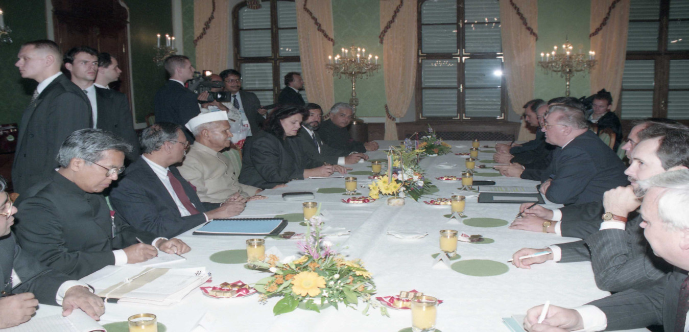 The President of India, Dr. Shankar Dayal Sharma at Lunch hosted by the President of the Slovak Republic, Mr. Michal Kovac, at Pezinok Chateau, in Slovakia on October 10, 1996.