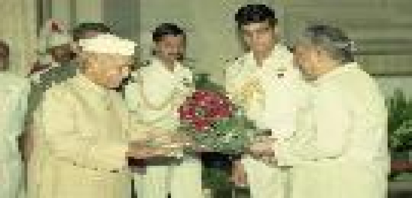 The President of India, Dr. Shankar Dayal Sharma presenting Kabir Puraskar for the year 1995 at Rashtrapati Bhavan in New Delhi on September 02, 1996.