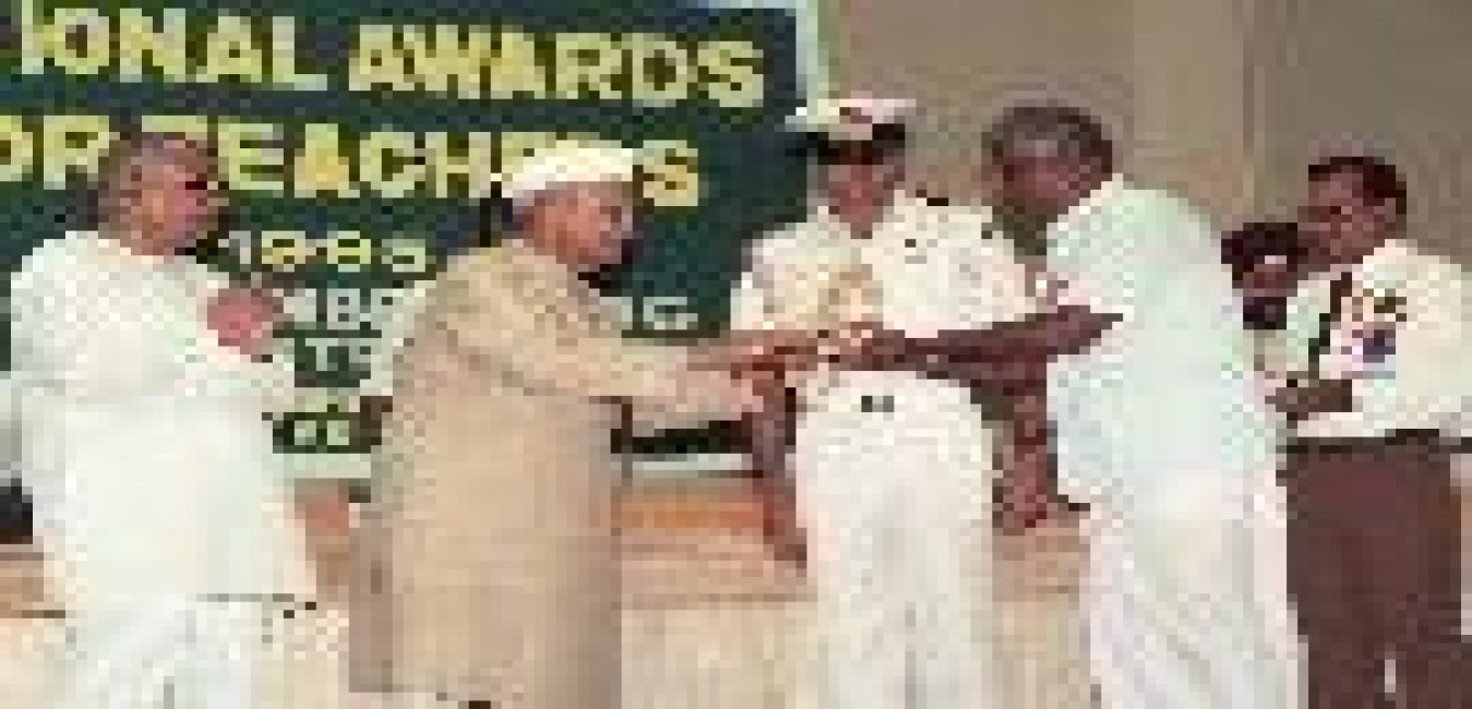 The President of India, Dr. Shankar Dayal Sharma presenting National Awards to the Teachers, on the occasion of Teachers' Day, at Vigyan Bhavan in New Delhi on September 05, 1996.