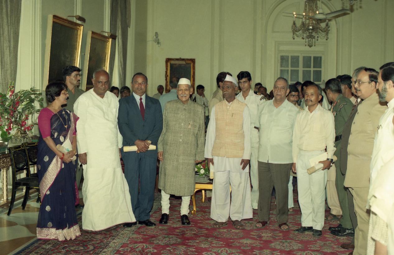 The President of India, Dr. Shankar Dayal Sharma presenting Indira Gandhi Rajbhasha Awards of Ministry of Home Affairs at Rashtrapati Bhavan in New Delhi on September 14, 1996.