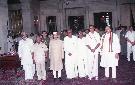 The President of India, Dr. Shankar Dayal Sharma administering oath to the Council of Ministers, at a Swearing-in-Ceremony at Rashtrapati Bhavan in New Delhi on July 10, 1996.