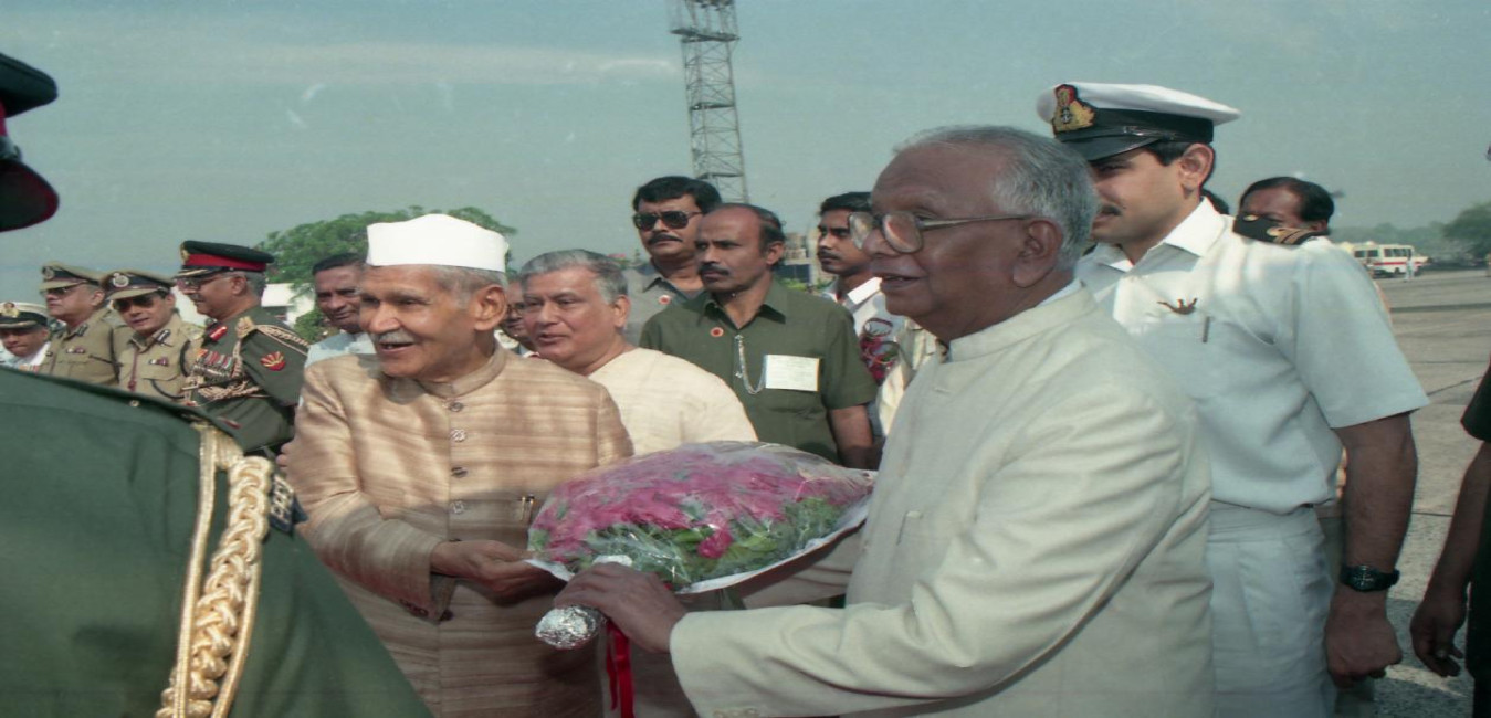 The President of India, Dr. Shankar Dayal Sharma during his departure at Jorhat airport, in Assam on March 02, 1996.