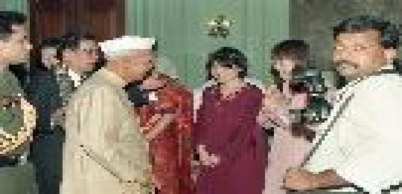 The President of India, Dr. Shankar Dayal Sharma meeting with Shri Swami Pragyanandji with others at Rashtrapati Bhavan in New Delhi on June 23, 1997.