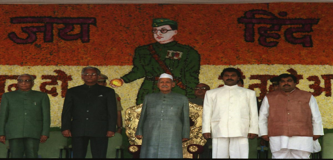 The President of India, Dr. Shankar Dayal Sharma unveiling the Statue of Netaji Subhash Chandra Bose and attends Civic Reception by Nagpur Municipal Corpration at Nagpur, in Maharashtra on December 09, 1995.