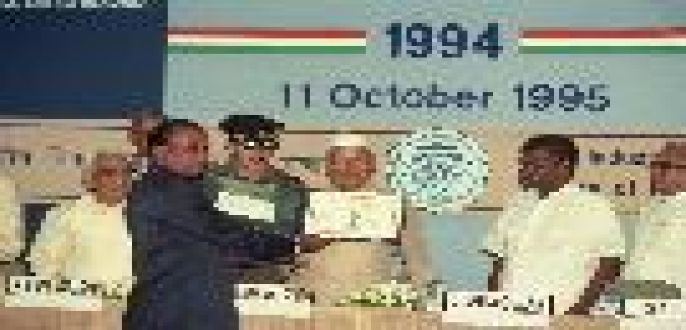 The President of India, Dr. Shankar Dayal Sharma presenting National Awards 1994 to Outstanding Small Scale Entrepreneurs for Quality Products, Instituted by the Ministry of Industry at Vigyan Bhavan in New Delhi on October 11, 1995.