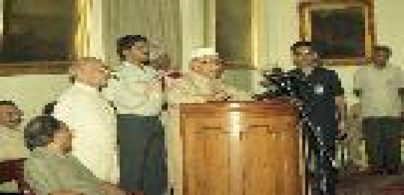 The President of India, Dr. Shankar Dayal Sharma meeting with Shri Gegong Apang, Chief Minister of Arunachal Pradesh with others at Rashtrapati Bhavan in New Delhi on October 13, 1995.