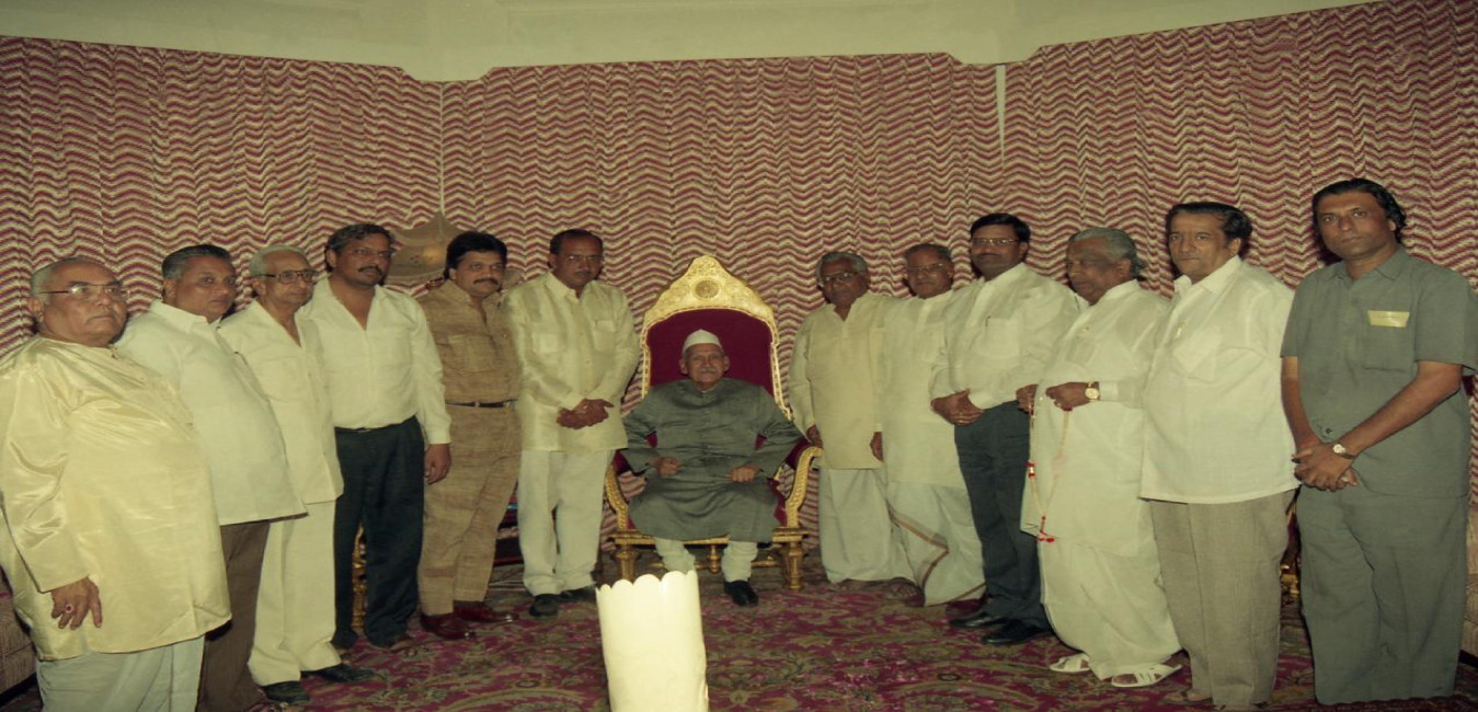 The President of India, Dr. Shankar Dayal Sharma meeting with Shri A. Gautam Jain, former Chairman, Trader Cell, APCC (I) with others from Jain Community, at Rashtrapati Nilayam, Bolarum, in Hyderabad on October 05, 1995.