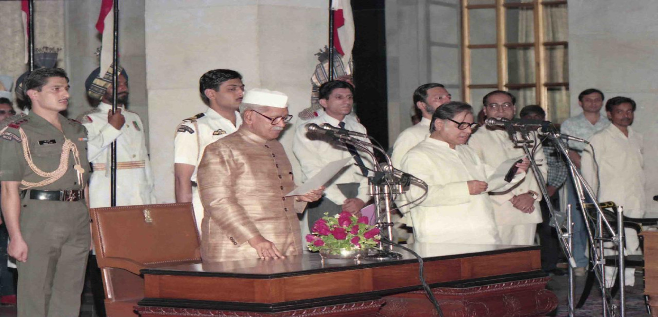 The President of India, Dr. Shankar Dayal Sharma administering oath to the Council of Ministers, at a Swearing-in Ceremony, at Rashtrapati Bhavan in New Delhi on June 10, 1995.