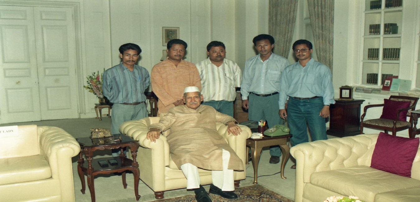 A Member Delegation from the Tribal Student's Federation, Assam led by Shri Ranoj Pegu calling on the President of India, Dr. Shankar Dayal Sharma at Rashtrapati Bhavan in New Delhi on June 11, 1997.