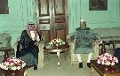 The Saudi Minister of Industry & Electricity and Co-Chairman, Indo-Saudi Joint Commission, HE Dr. Hashim Abdullah Yamani calling on the President of India, Dr. Shankar Dayal Sharma, at Rashtrapati Bhavan in New Delhi on June 12, 1997.