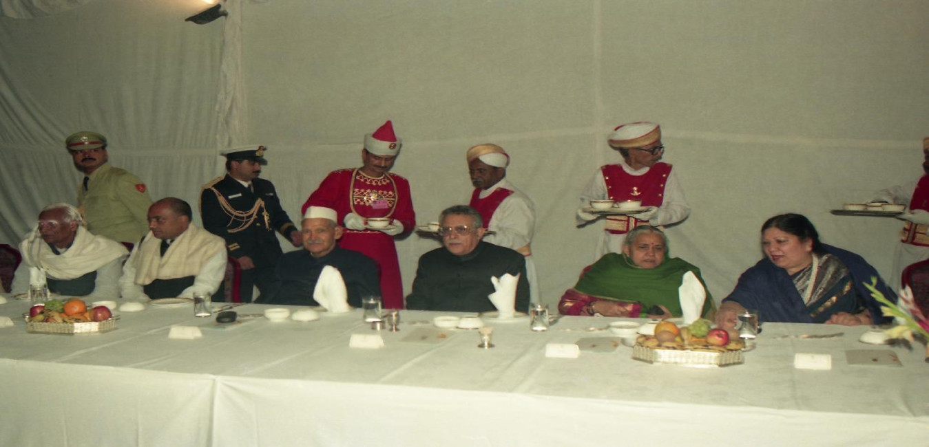 The President of India, Dr. Shankar Dayal Sharma at a dinner hosted by the Governor, Madhya Pradesh, Shri Mohammad Shafi Qureshi, at Bhopal, in Madhya Pradesh on January 11, 1995.
