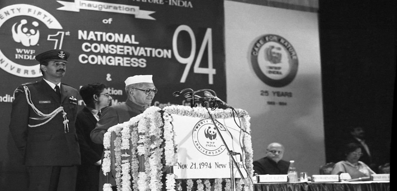The President of India, Dr. Shankar Dayal Sharma inaugurating the First National Conservation Congress of the World Wide Fund for Nature-India, in New Delhi on November 21, 1994.