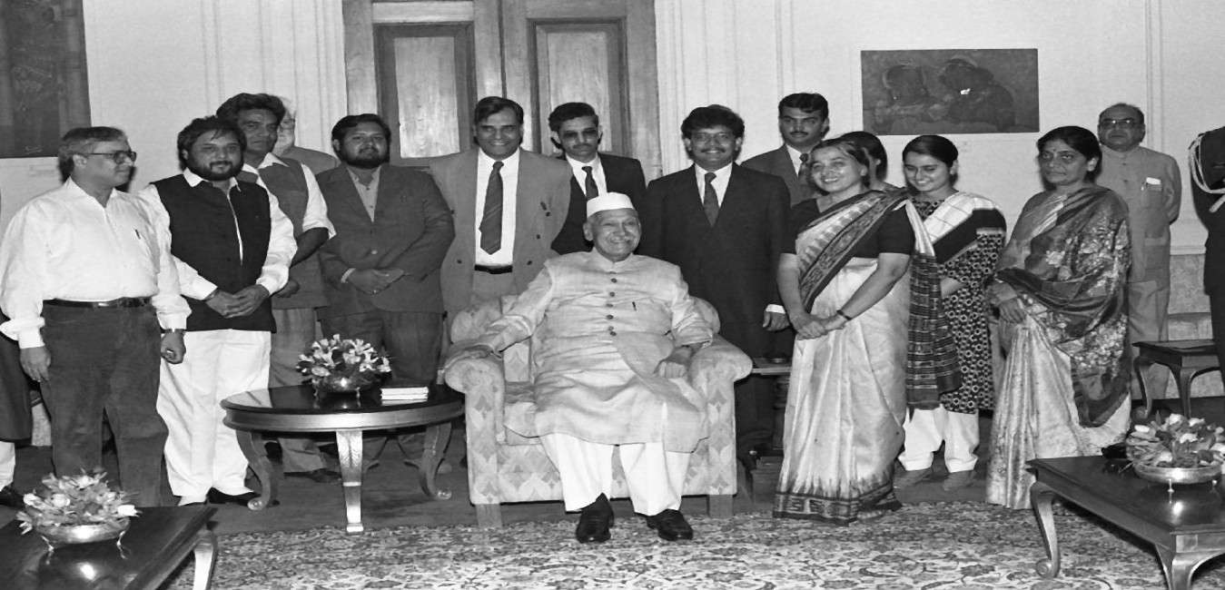 The President of India, Dr. Shankar Dayal Sharma meeting with Youth delegation from Punjab at Rashtrapati Bhavan in New Delhi on November 18, 1994.