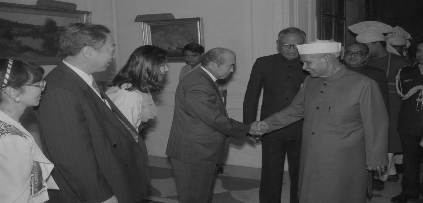 The President of India, Dr. Shankar Dayal Sharma meeting with Heads of delegations participating in the 5th International Seminar of the Asian Association of Supreme Audit Institutions at Rashtrapati Bhavan in New Delhi on November 15, 1994.