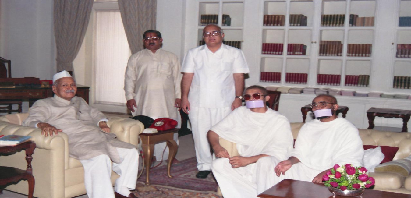 The President of India, Dr. Shankar Dayal Sharma meeting with Jain Muni Prasant Kumarji with others at Rashtrapati Bhavan in New Delhi on October 26, 1994.