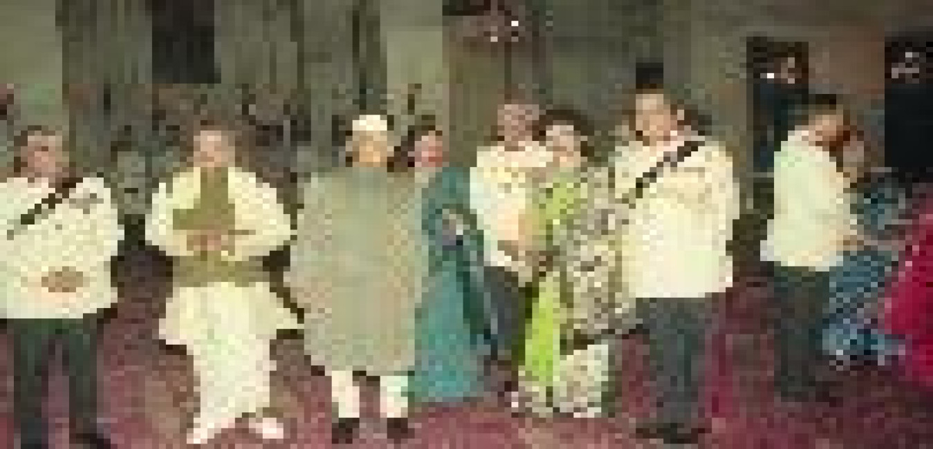 The President of India, Dr. Shankar Dayal Sharma receiving a 'Pankha' of Phool Walon Ki Sair from Members of Anjuman Sair-e-Gul Faroshan at Rashtrapati Bhavan in New Delhi on October 15, 1994.