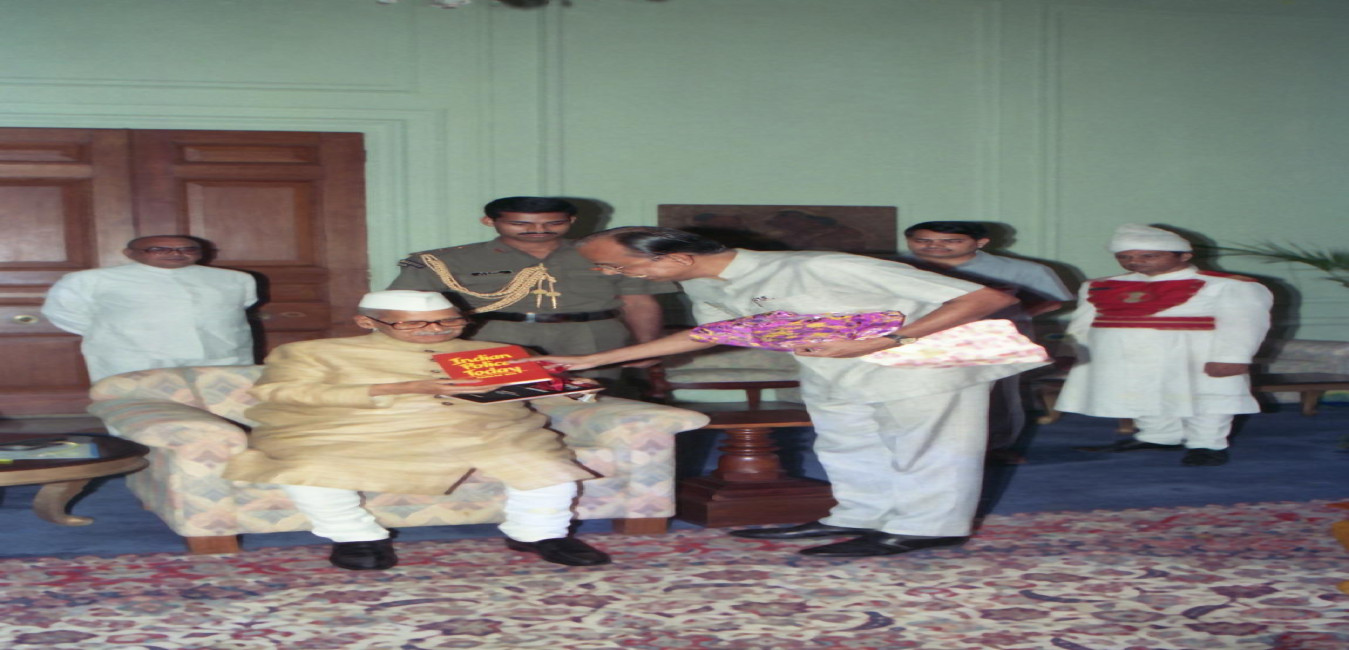 The President of India, Dr. Shankar Dayal Sharma receiving a copy of the book from Shri Satyabrata Sharma with others at Rashtrapati Bhavan in New Delhi on September 14, 1994.