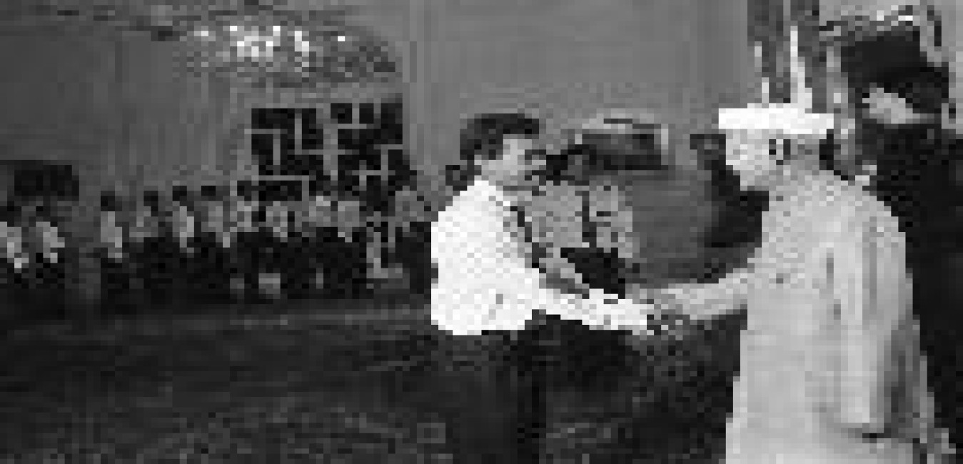 The President of India, Dr. Shankar Dayal Sharma presenting the Kabir Puraskar at Rashtrapati Bhavan in New Delhi on August 13, 1994.