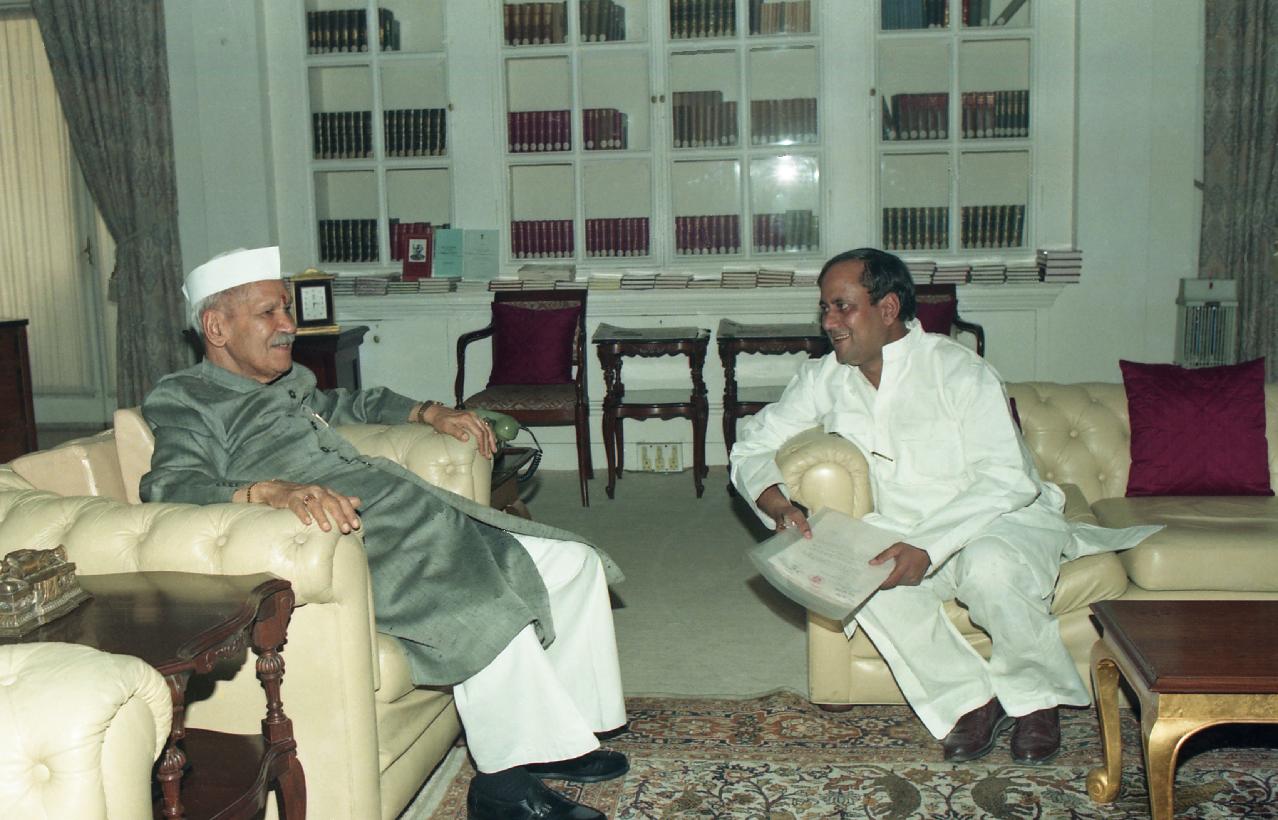 The Chief Minister of Rajasthan, Shri Bhairon Singh Shekhawat calling on the President of India, Dr. Shankar Dayal Sharma, at Rashtrapati Bhavan in New Delhi on May 25, 1997