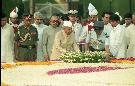The President of India, Dr. Shankar Dayal Sharma laying wreath at the Samadhi of Late Pt. Jawaharlal Nehru on the occasion of his death Anniversary, at Shantivana in Delhi on May 27, 1997
