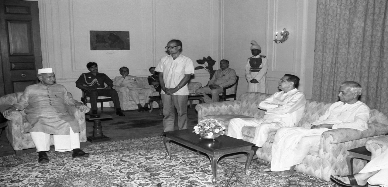 The President of India, Dr. Shankar Dayal Sharma meeting with Shri Somnath Chatterjee with others MPs from Left Parties and Janata Dal at Rashtrapati Bhavan in New Delhi on May 13, 1994.