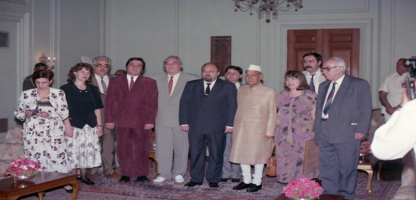 A Bulgarian Parliamentary delegation led by H.E. Mr. Alexendar Yardanov, Chairman of the Bulgarian National Assembly calling on the President of India, Dr. Shankar Dayal Sharma at Rashtrapati Bhavan in New Delhi on March 28, 1994.
