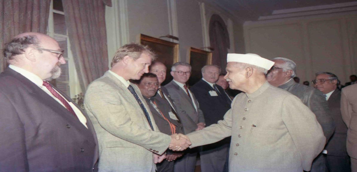 The President of India, Dr. Shankar Dayal Sharma meeting with Delegates of the 5th World Conference of World Association of Beet and Cane Growers at Rashtrapati Bhavan in New Delhi on January 27, 1994.