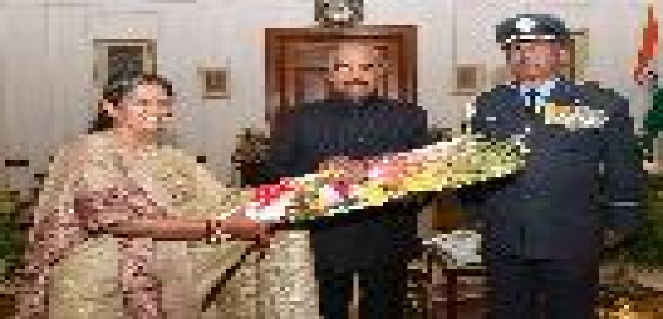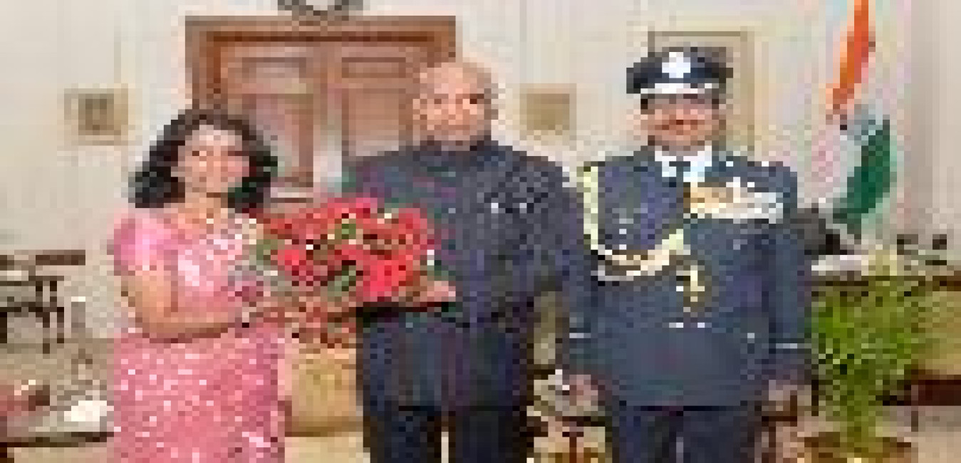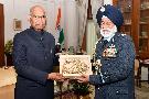 Air Marshal S.B.P. Sinha, PVSM, AVSM, VM, ADC, AOC-in-C, HQ CAC along with his spouse Smt. Alpana Sinha meeting with the President of India, Shri Ram Nath Kovind, at Rashtrapati Bhavan on December 17, 2018.