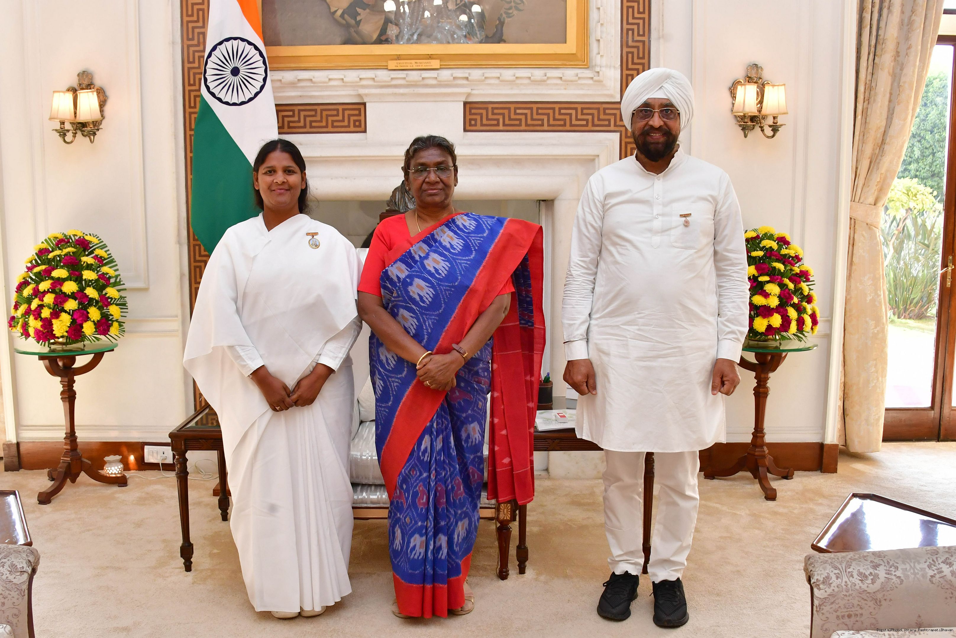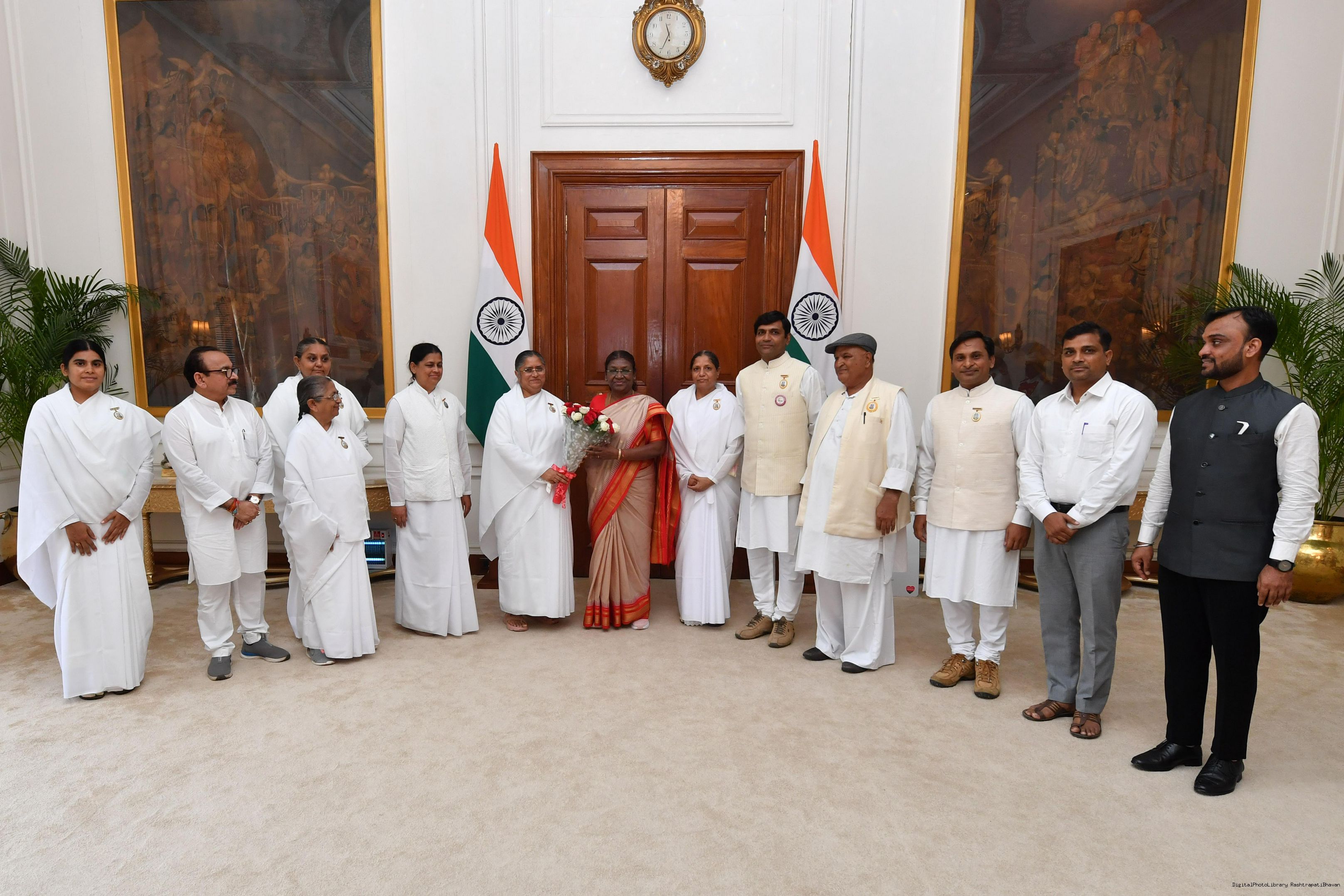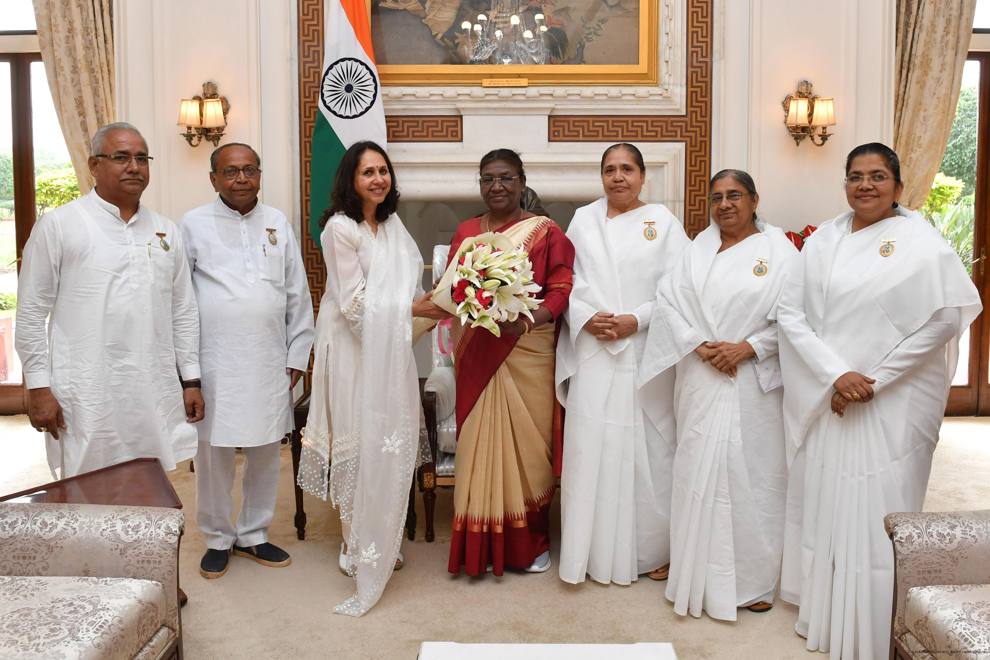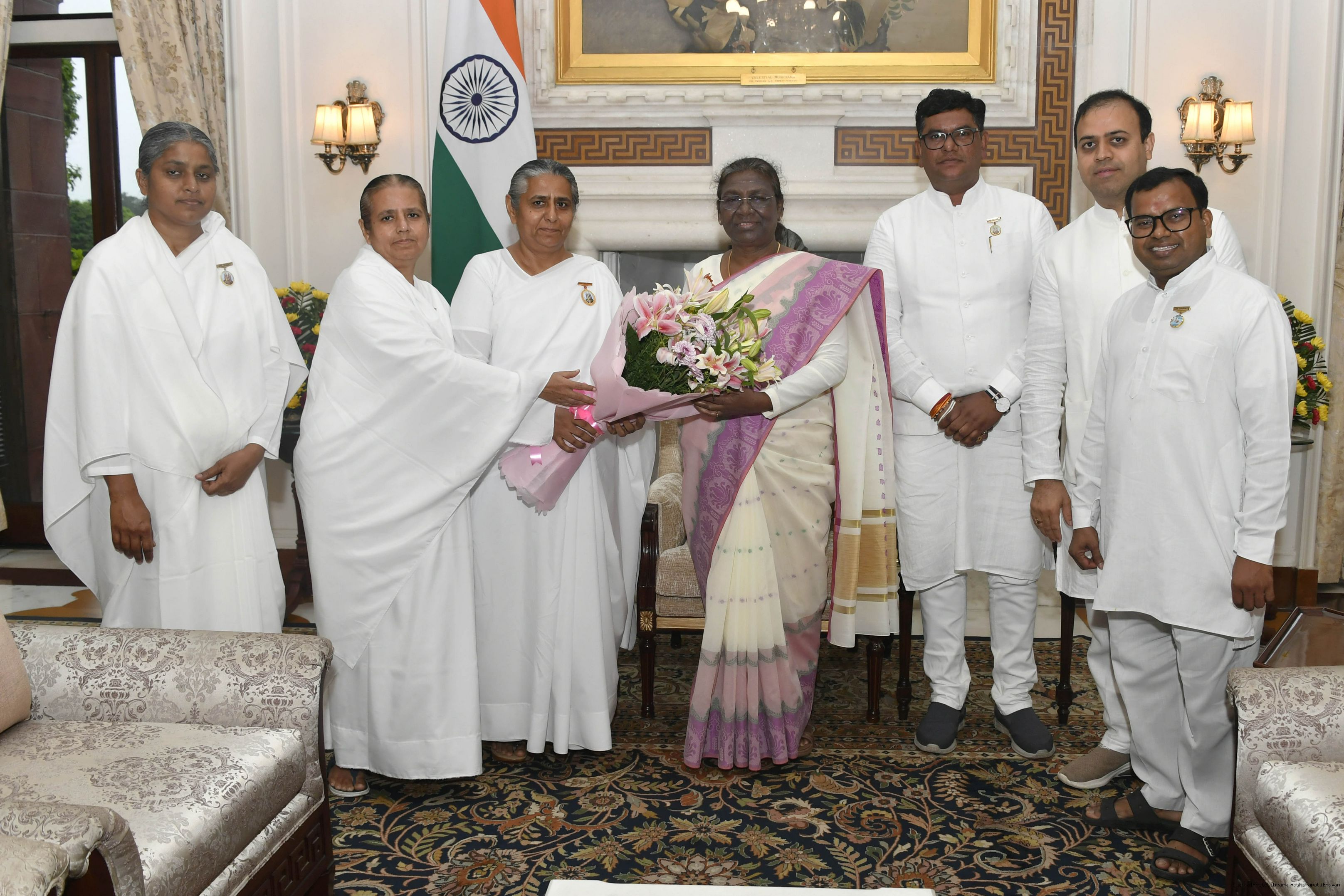 BK Sheela along with others meeting with the President of India, Smt. Droupadi Murmu at Rashtrapati Bhavan on July 20, 2023.