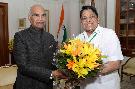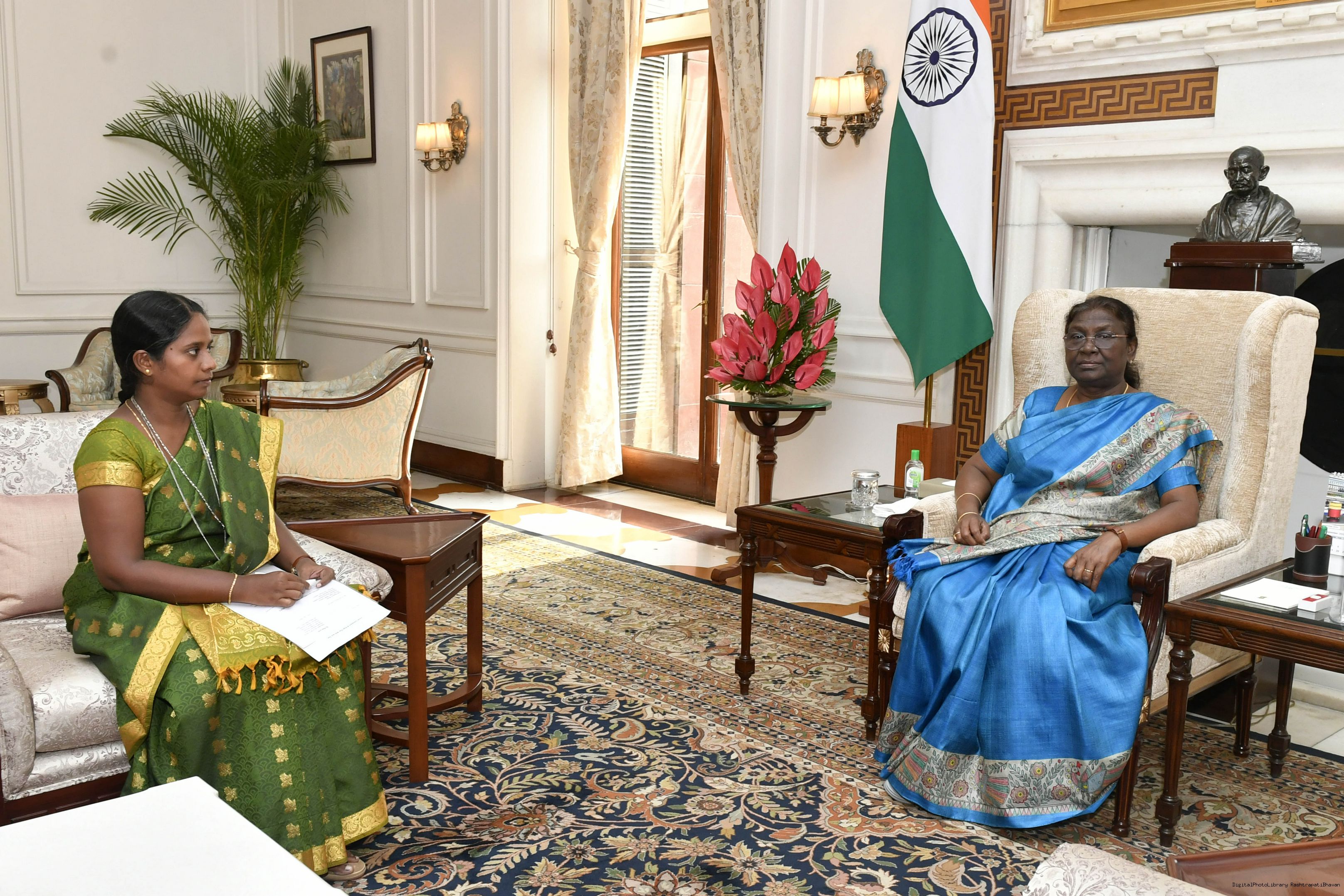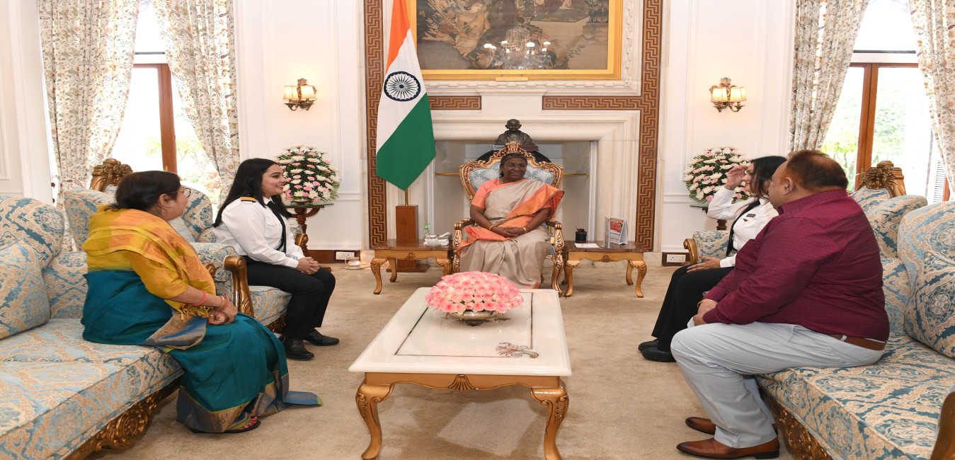 Capt (Smt.) P. Deepa from Madurai meeting with the President of India, Smt. Droupadi Murmu, at Rashtrapati Bhavan on Sep 02, 2022.