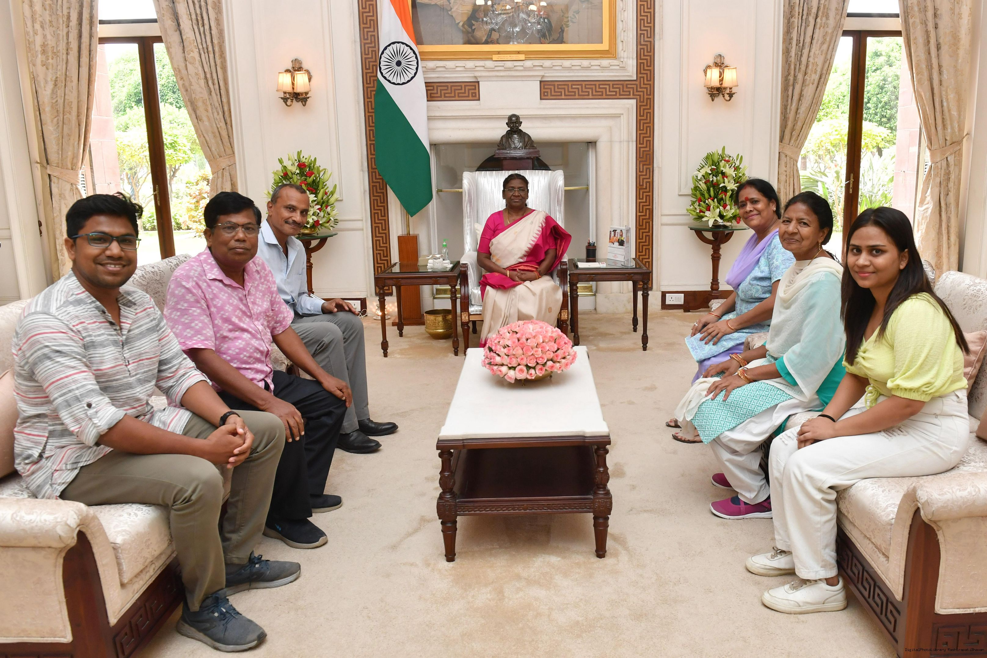 Colonel Dinesh Kumar Singh Deo (Retd) along with his family members meeting with the President of India Smt. Droupadi Murmu at Rashtrapati Bhavan on January 29-01-2024.