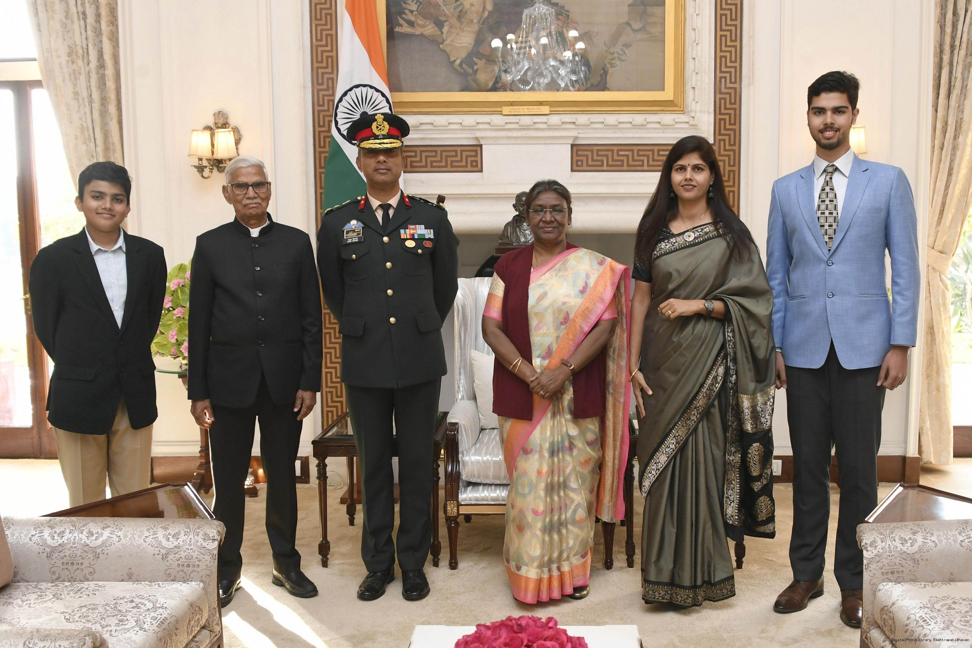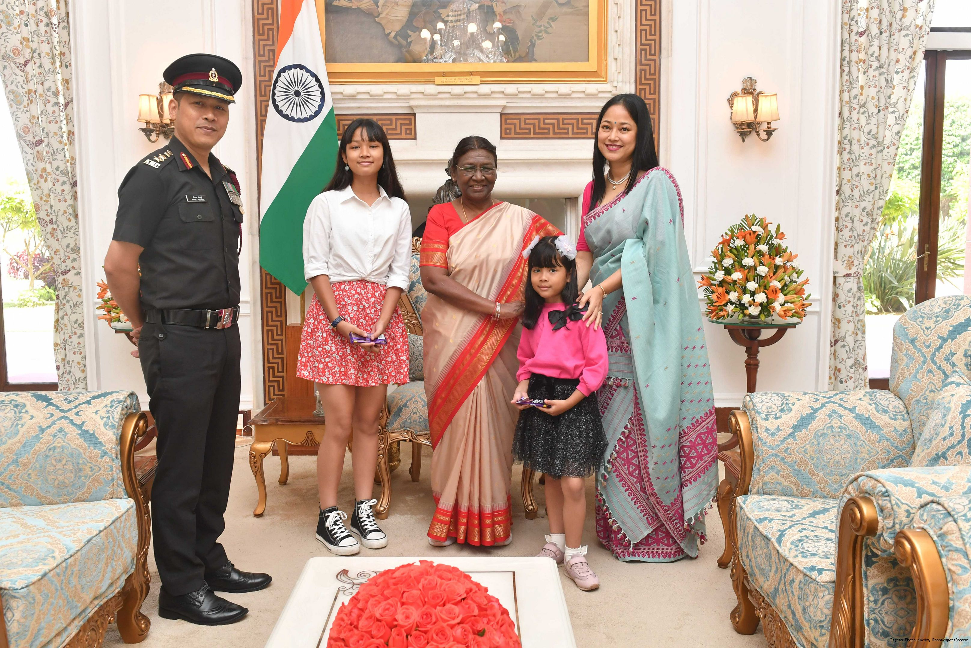 Col Ganesh Shankar Vidyarthi CO 6 SIKH along With Family members meeting with the President of India, Smt Droupadi Murmu at Rashtrapati Bhavan on February 11, 2024