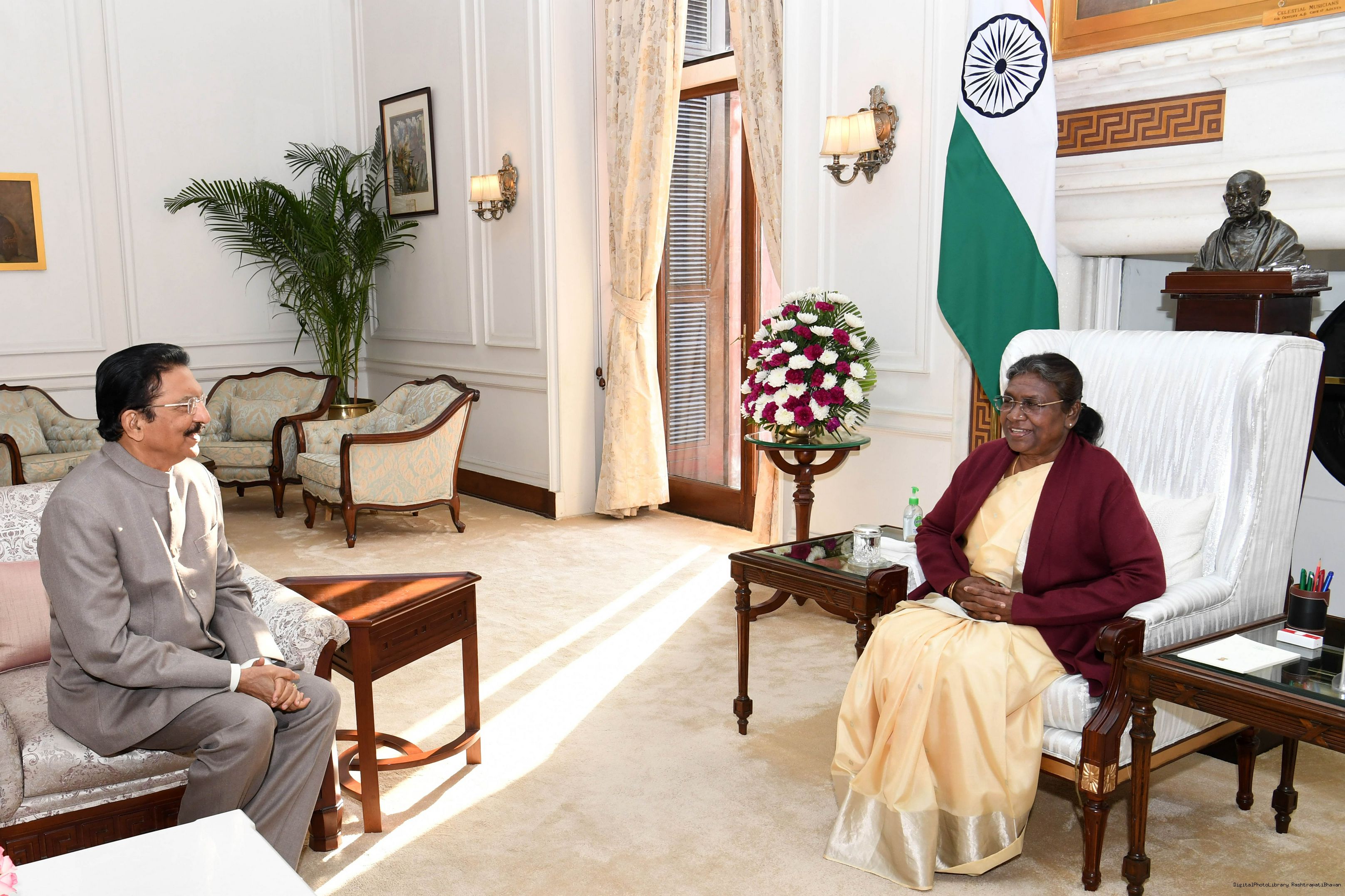 Ch. Vidyasagar Rao, former Governor of Maharashtra meeting with the President of India Smt. Droupadi Murmu at Rashtrapati Bhavan on February 14, 2023.