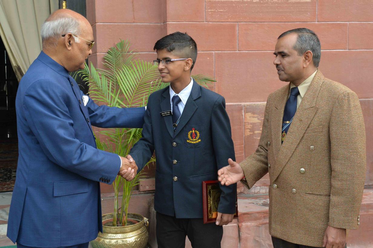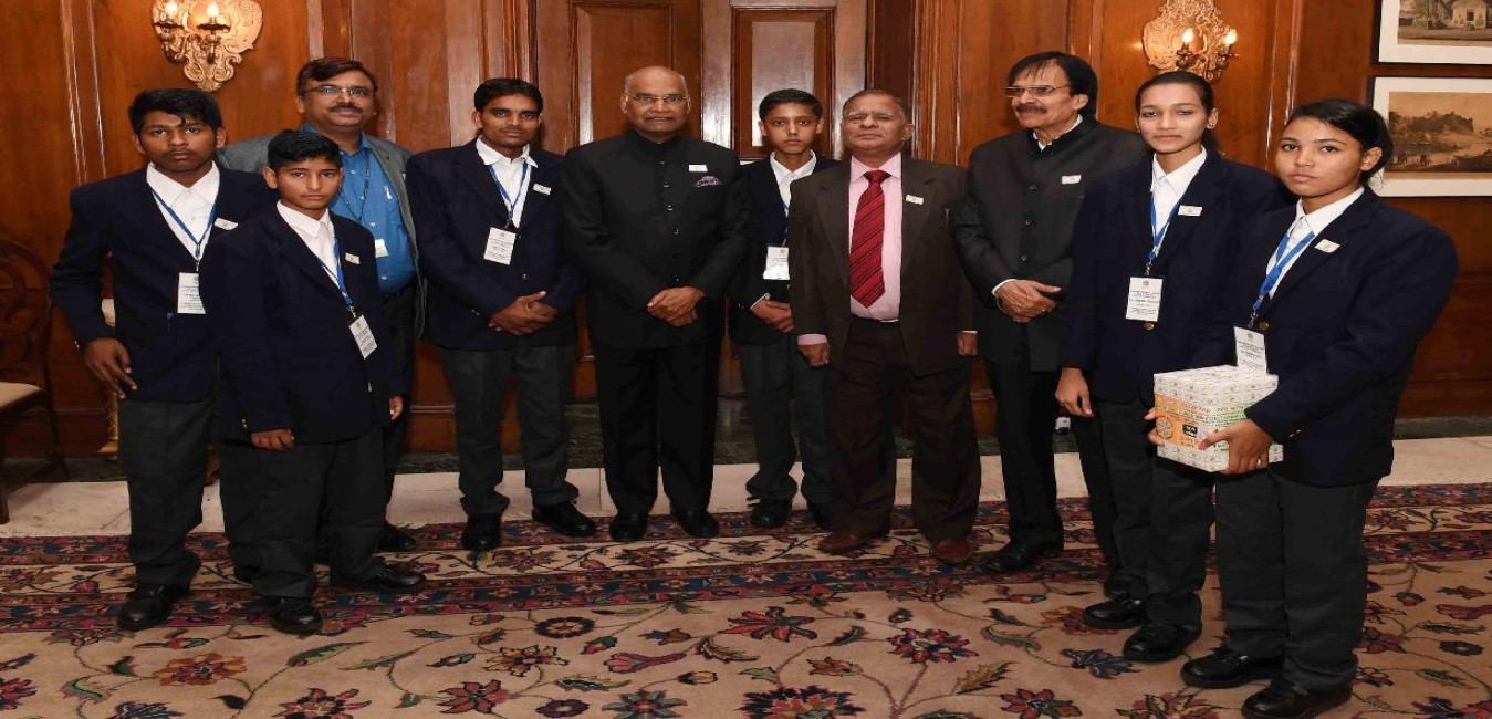 Cadets and Officials of Rashtriya Military School, Ajmer meeting with the President of India, Shri Ram Nath Kovind, at Rashtrapati Bhavan on November 03, 2017.