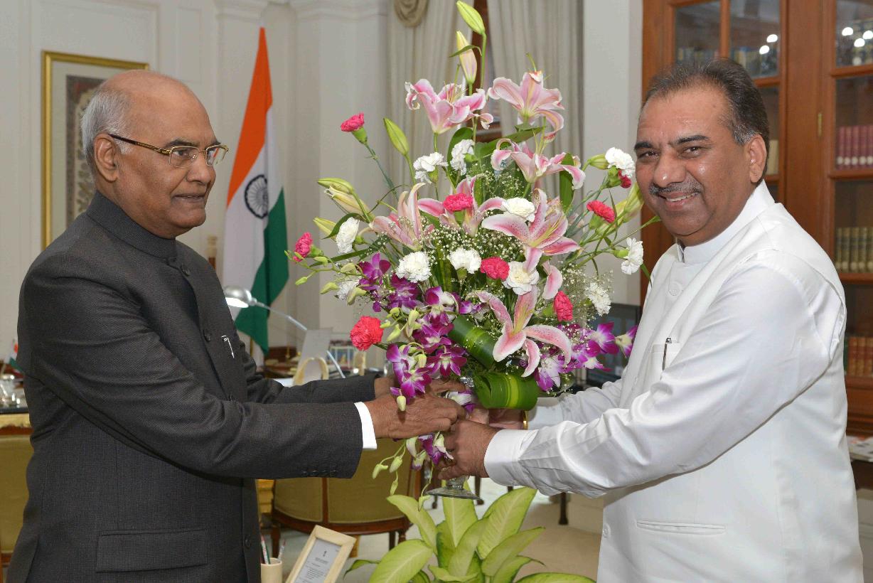 Chaudhary Kanwar Singh Tanwar, MP (LS) meeting with the President of India, Shri Ram Nath Kovind, at Rashtrapati Bhavan on August 14, 2017.